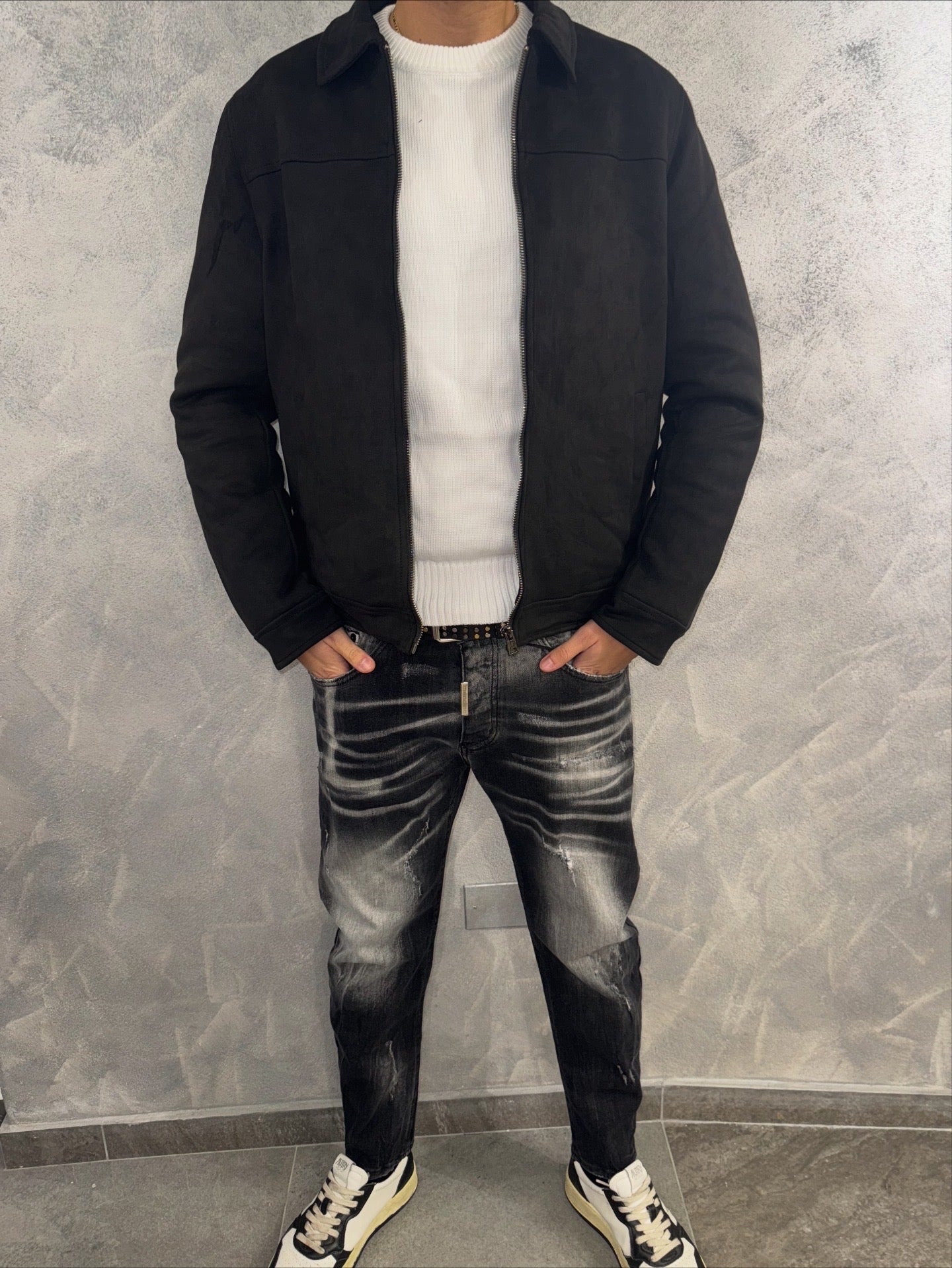 Questa giacchetta scamosciata nera è un must-have per ogni guardaroba. Realizzata con morbida pelle di camoscio, questa giacca offre un look elegante e confortevole. Grazie al suo design versatile, potrai indossarla in ogni occasione, dal lavoro agli eventi serali. Una scelta di stile senza tempo che non può mancare nel tuo guardaroba.