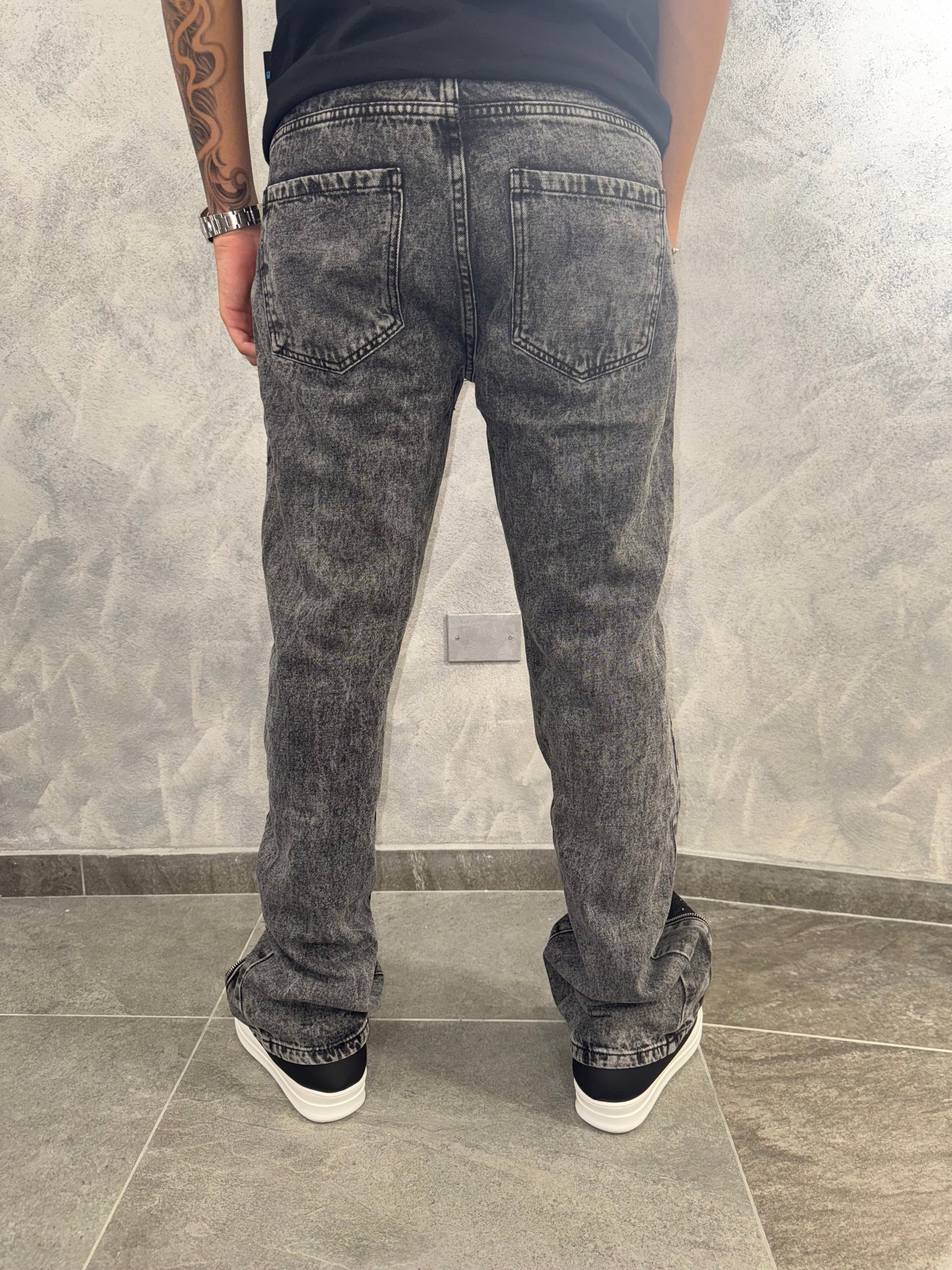 I jeans Flare Zip VVS garantiscono un look elegante e alla moda, grazie al loro taglio a zampa d'elefante e alla loro chiusura con zip. Realizzati con materiali di alta qualità, questi jeans offrono comfort e resistenza, perfetti per ogni occasione.