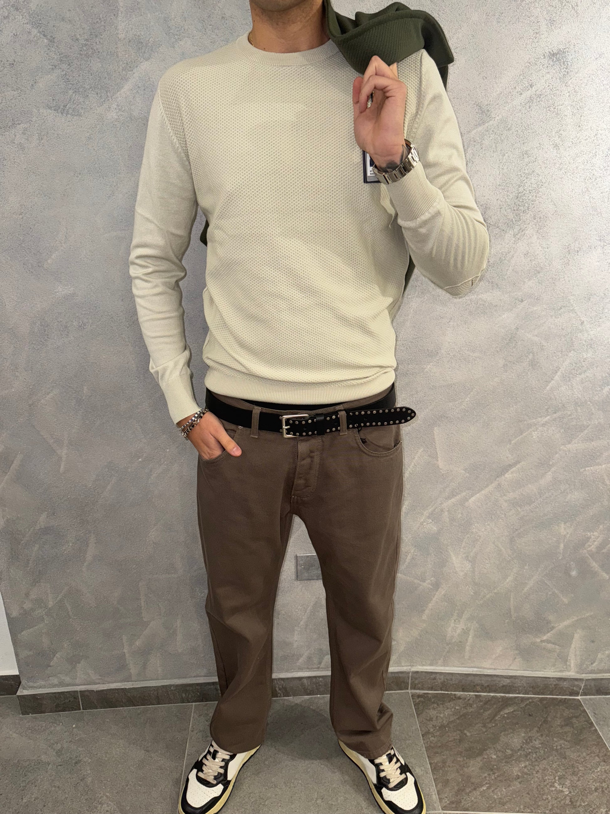 Il maglioncino nido d’ape e coste beige è un capo d'abbigliamento elegante e di alta qualità. Il tessuto a nido d'ape e le coste accentuano la sua morbidezza e lo rendono perfetto per le giornate più fredde. Con il suo stile sofisticato e confortevole, è ideale per chi cerca un look raffinato senza rinunciare al comfort.